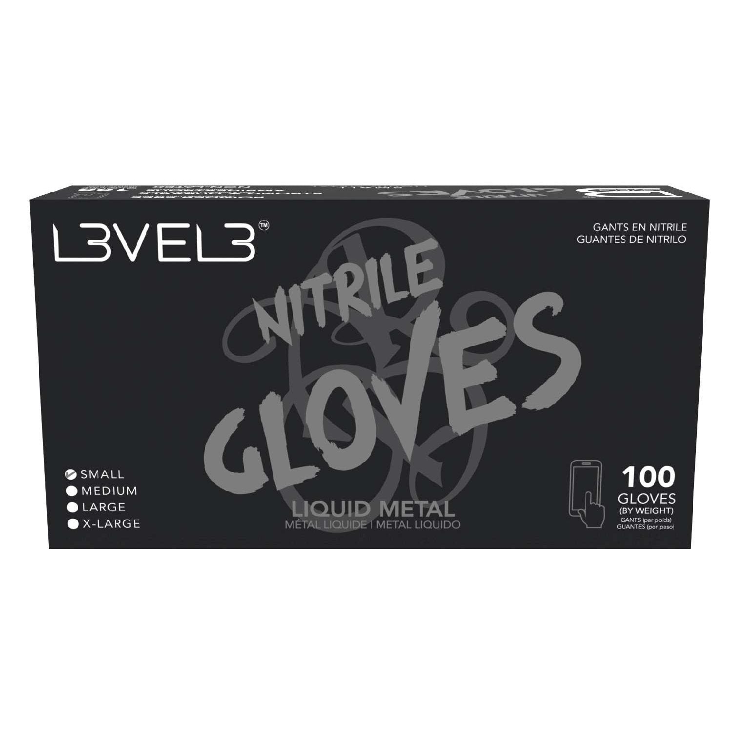 L3Vel3 L3Vel3 Nitrile Gloves Liquid Metal Small 100 Piece